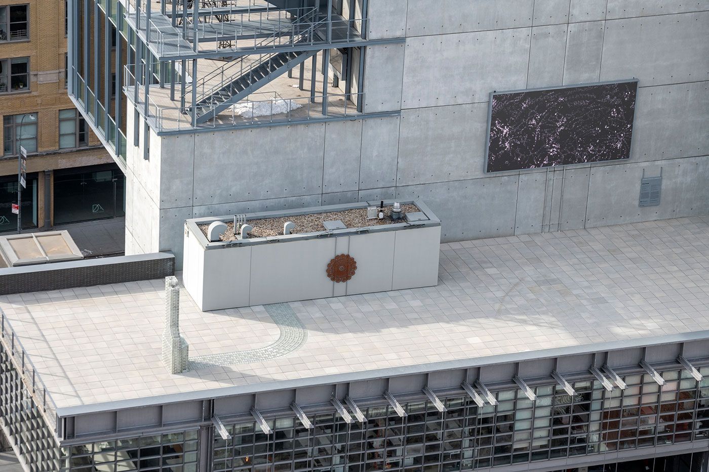 As part of the biennial, the Los Angeles-based artist Kelly Akashi presents the Hyundai Terrace Commission on the Museum’s fifth-floor outdoor gallery. The project brings together a new sculptural installation and an outdoor-screen animation in response to the Los Angeles wildfires of January 2025. Monument (Altadena) (2026) is a reconstruction of the chimney piece from the artist’s home, the only element to survive the Eaton Fire. On the outdoor screen, the artist’s Remnants (Constellations) (2026) extends Akashi’s investigation of trace, memory, and aftermath into moving image.